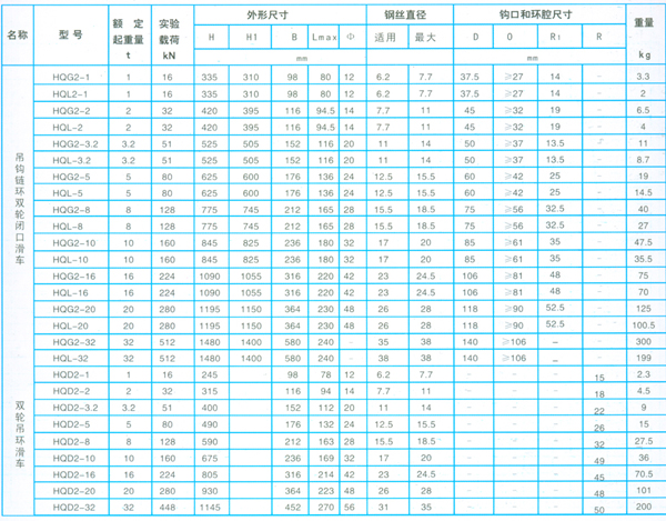 鏈環(huán)雙輪閉口滑車的技術參數(shù):