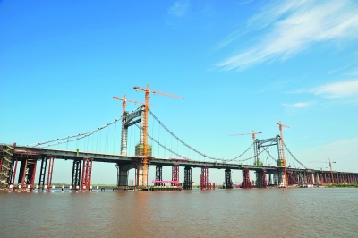記者從哈爾濱市建委西部路網(wǎng)工程建設(shè)指揮部了解到,28日,陽(yáng)明灘大橋主橋已順利完成受力體系轉(zhuǎn)換,起初用于臨時(shí)支撐主橋的支墩已開始拆除,吊索開始受力。自此,扛起重達(dá)2萬(wàn)噸的陽(yáng)明灘大橋主橋的任務(wù)完全落在了196根吊索和主纜身上。本報(bào)記者 孫殿喜 攝