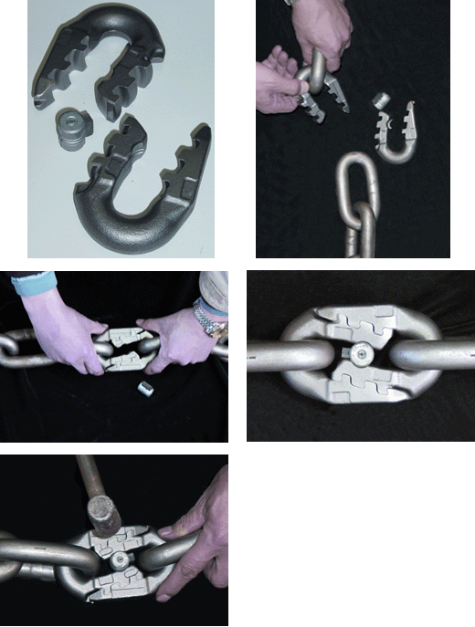 1、將接鏈環(huán)兩半部分分別掛在鏈環(huán)上